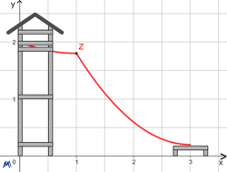 In Punkt Z ist diese nicht unfallsicher. Zunächst würden die Kinder sehr flach bis fast waagrecht ruschten, dann, nach Punkt Z geht es plötzlich ziemlich steil abwärts. Direkt bei Z, beim "Knick" der Kurve, sind eine harte Kante, eventuell zerrissene Hosen und "Aua"-Rufe zu befürchten.