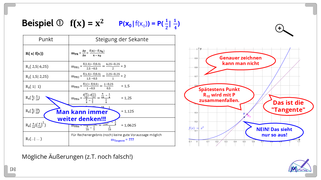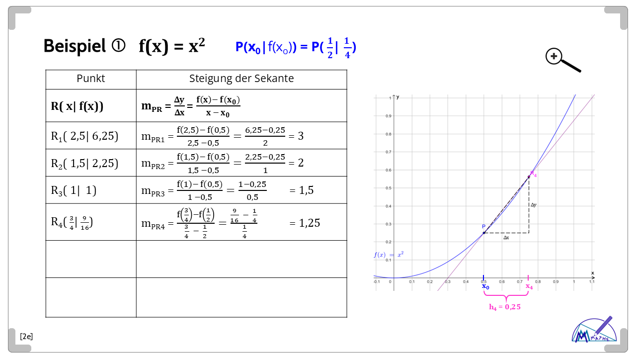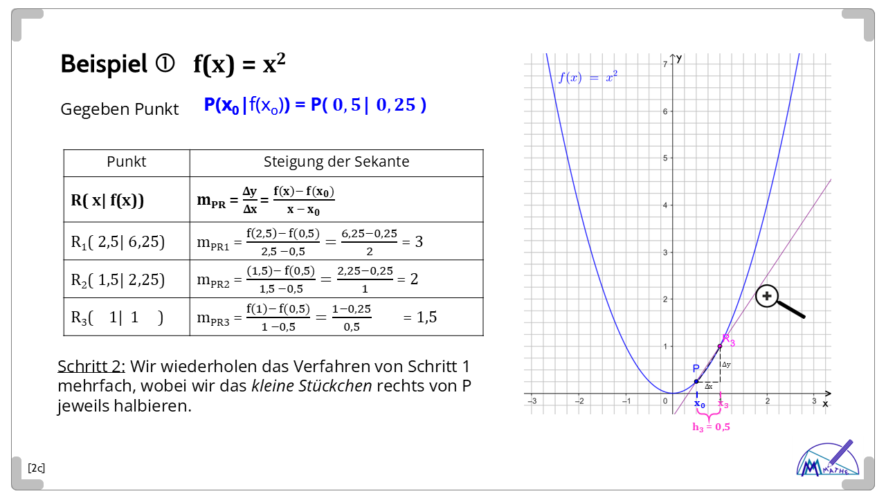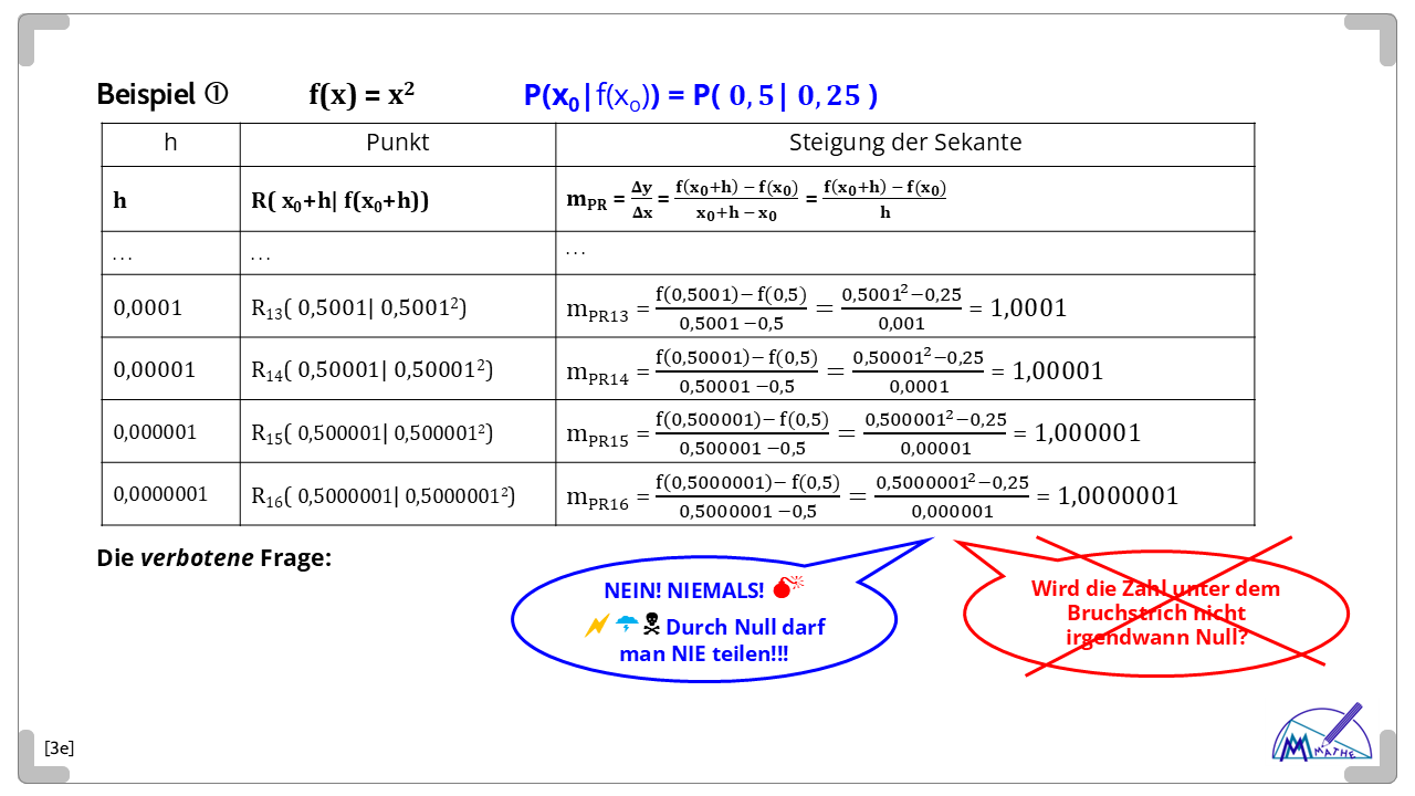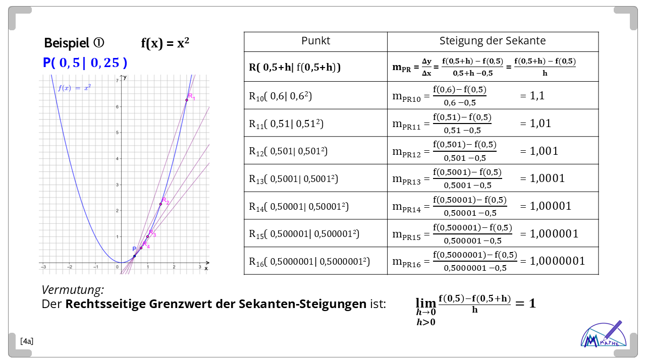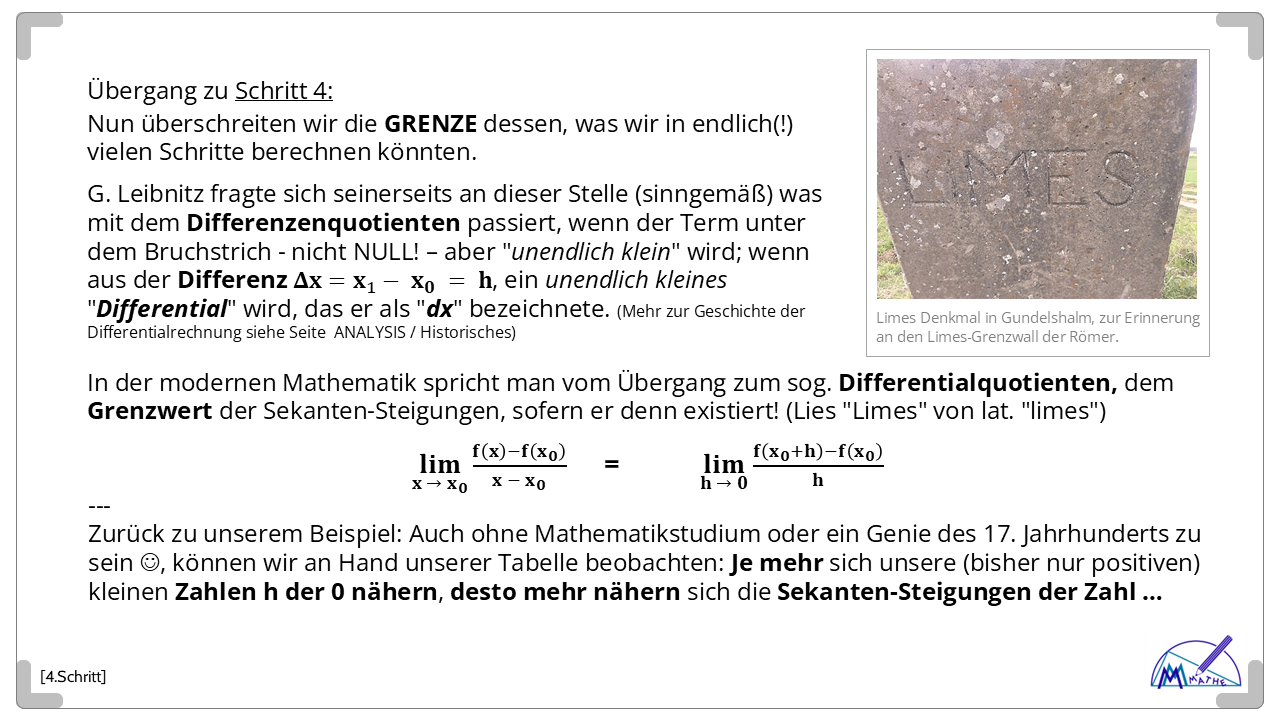 Die Frage ist dann: Gibt es einen Grenzwert der Sekanten-Steigungen, den sog. Differentialquotienten